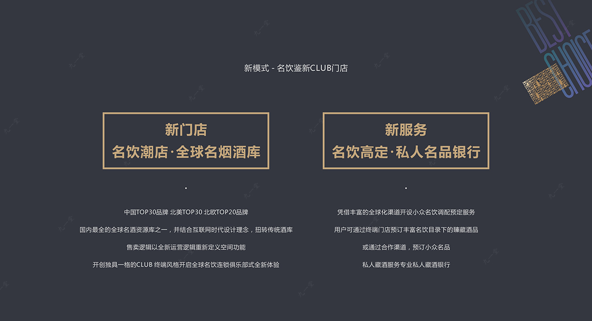 服務(wù)內(nèi)容:白酒品牌連鎖店定位策劃,老品牌升級,品牌VI設(shè)計,高端白酒專賣店空間設(shè)計