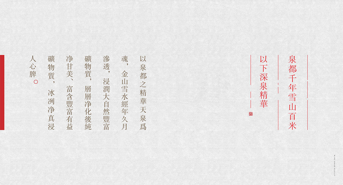 泉都千年雪山百米以下深泉精華--以泉都精華天泉為魂。金山雪水經年久月滲透,浸潤大自然豐富礦物質,層層凈化后純凈甘美、富含豐富有益礦物質,冰冽凈真浸人心脾。恒溫貯藏中國名田好谷--以中國名田好谷精華為實。遍訪中國六大精良谷產區,甄選當季上等谷物精華,領先恒溫貯藏,以谷物最好的狀態釀造中國頂級品質白酒。千余種益養微生物締造酒中圣品--中國好曲是為骨。菏澤豐富深層地下泉水滋養世界獨有而珍稀的微生物菌群。甄選私家久窖活池的優良生態老窖,釀制獨一無二的頂級久曲。國家非物質文化遺產釀酒技藝--魂骨天成,藝在人為。世代傳承未曾斷代的傳統古法釀制技藝,國家級非物質文化遺產大師級團隊潛心鉆研,釀制天人合一的酒中圣品。雅紙封壇忻陶洞藏百年醇香--傳承百年的曠世絕品。中國四大名紙雅紙封壇,百年珍貴忻州土陶封壇,于抱樸專有恒溫洞藏,世間百年而活酒呼吸不絕,悠久美香恒久不褪。