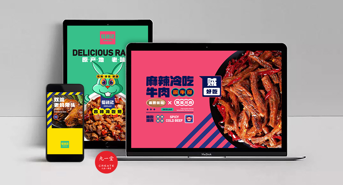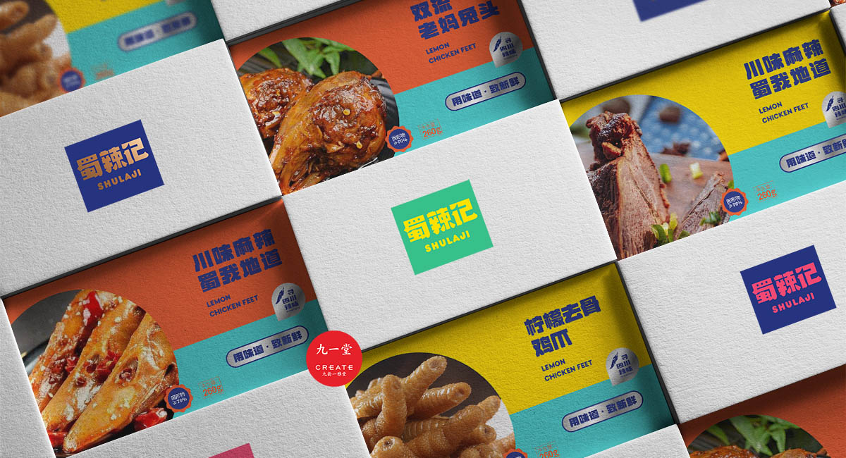 四川獨(dú)有地理環(huán)境,孕育出了許多以辣為主的酸辣雞爪、老麻兔頭、藤椒鴨等極具地方特色的傳統(tǒng)四川小吃。蜀辣記秉著熱愛川蜀辣味的初衷,重新發(fā)現(xiàn)四川味道讓極具地方特色的地方小吃煥發(fā)新的生機(jī),讓大城市快節(jié)奏下生活和工作的年輕人閑下來(lái)時(shí),能夠享受食物帶來(lái)的美好休閑時(shí)光。此次九一堂受邀參與蜀辣記項(xiàng)目制作,我們旨在打造一個(gè)新銳、開放、快樂的地方小吃品牌形象而努力。