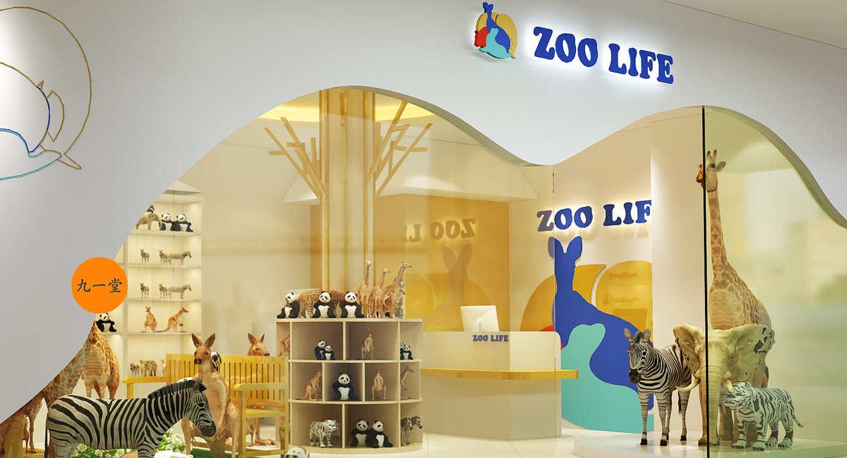 zoolife是HANSA旗下中低端系列的仿真動物展廳,zoolife仿真動物的展廳從開始還原動物原始的生長環境的體驗感受到現在商超貨架式的4.0店的體驗升級店,也是經過了2年的市場驗證和銷售總結而的出來的。這種貨架的展示方式正是滿足了90后的審美簡單粗暴的購物思維的一種趨勢,不要文藝,不要思考,喜歡就拿,便捷,直接。整體店面空間現代、時尚、簡約、便捷。表現手法上把生態的概念再升級設計,把展柜的頂面換成屋檐的概念,中間的柱子不用仿真樹,用了樹的概念。色彩上室內所有木作用了生態的原木色和白色交叉進行,生動,干凈、明亮。淺色空間里局部出現綠色草坪,生機活潑。把呼吁保護動物的聲音變成了為他們建造一個溫暖的家園和諧共生的概念植入進來,讓品牌的精神升華。