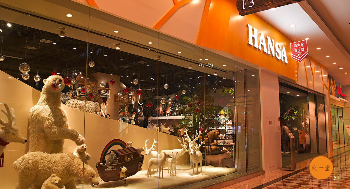 HANSA罕莎--全球仿真度最高的毛絨玩具, 它的每一款產品都是手工縫制, 形態體征極為考究,并賦予它們獨特的個性. 九一堂在本次成都店鋪設計中塑造上圍繞"尊重大自然,就是尊重你自己"這一核心理念而展開, 并引導孩子對大自然認知的同時保護動物,讓動物即朋友這一理念推廣到更多的城市,讓這樣的聲音回蕩在世界每一個角落。